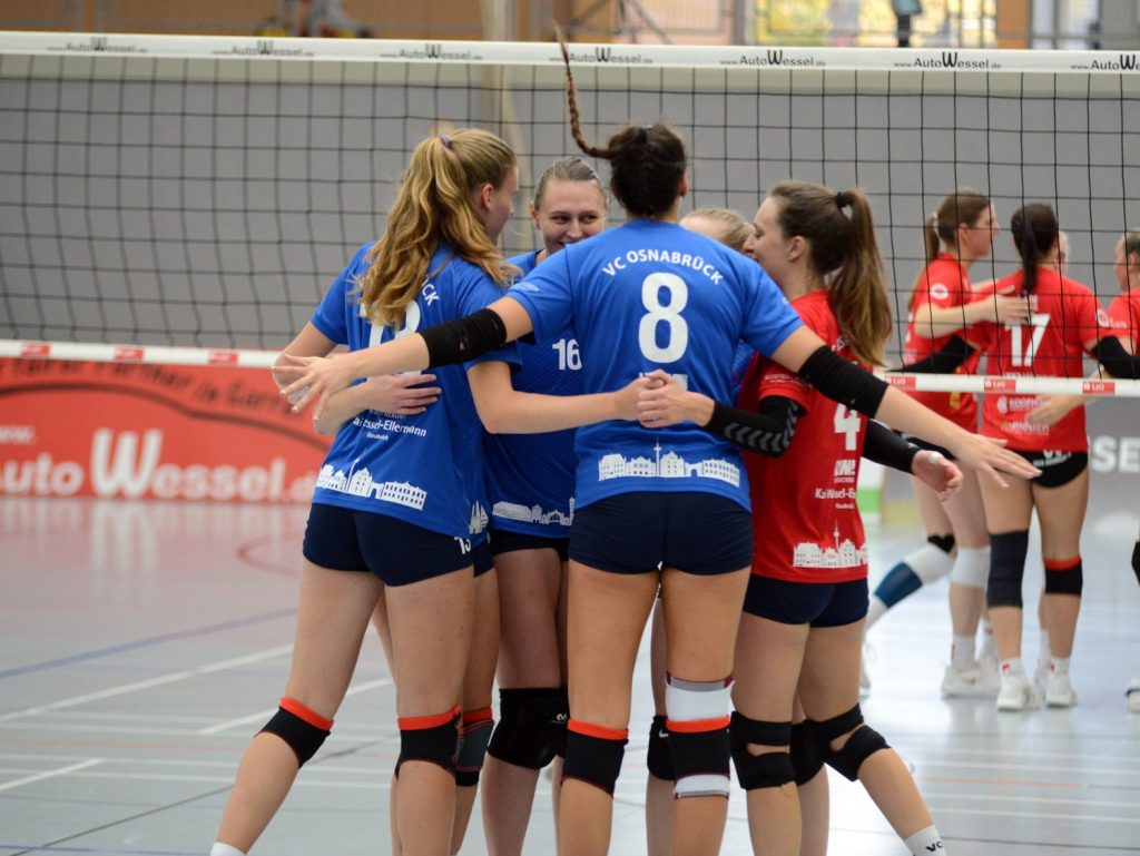Osnabrück. Es gibt Spiele, die bleiben Sportlern ewig in Erinnerung. es sind Momente für die Ewigkeit. Drittliiga-Aufsteiger VC Osnabrück hatteden Düsseldorfer SC zu Gast und schlug den bis dato ungeschlagenen Drittliga-Spitzenreiter nach einem 0:2-Satzrückstand und einer tollen Aufholjagd noch mit 3:2 (20:25, 17:25, 25:23, 25:17, 15:11) — Extase im Jubelkreis der Mannschaft, grenzenlose Stimmung auf der Tribüne der Schlosswallhalle am Samstagabend. Aus einem starken VCO-Team, das sich vom vorletzten auf den achten Tabellenplatz verbesserte, ragte diesmal Libera Dina Dell heraus, die sich die MVP-Sonderauszeichnung mit flinken Abwehraktionen verdiente.