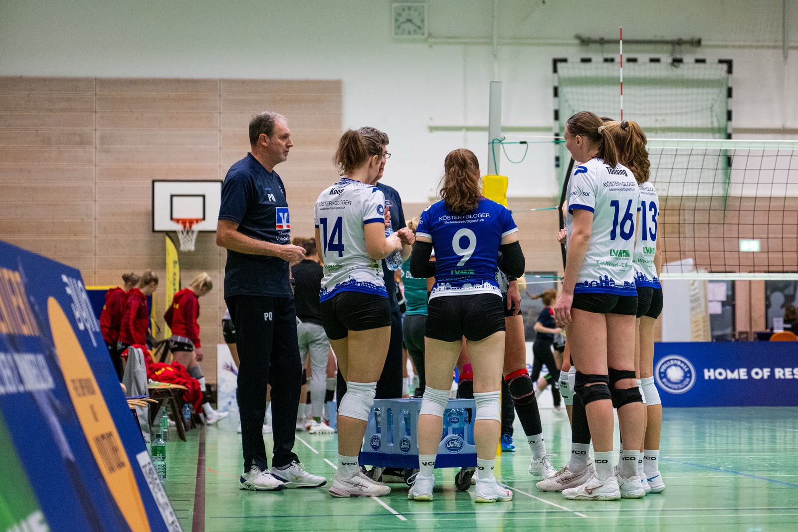 „Ich habe mich beim Matchball beim Aufspringen fast verletzt. Ich bin begeistert von der Art und Weise, wie wir gespielt haben. Wir waren flexibel, haben viel Disziplin gezeigt und konsequent gespielt.Heute war ein perfekter, schöner Tag für uns. – Ob Schwerin heute nicht seinen besten Tag gehabt hat? Der Verlierer macht nie sein bestes Spiel, das ist klar. Du musst die Mannschaft dann trotzdem so unter Druck setzen, dass sie auch tatsächlich verliert. Das haben wir geschafft. Wir mussten uns die Punkte erkämpfen, obwohl die immer wieder versucht haben, den Druck zu erhöhen. Das haben unsere Mädels sehr gut gemacht. – Nach dem ersten Satz haben wir uns gesammelt und gesagt, wir sind trotz der letzten Punkte von Schwerin dran und müssen die blöden Fehler wie Missverständnisse abstellen. Dann wird es laufen. Danach haben wir schließlich viel weniger einfache, individuelle Fehler gemacht. – Was den Block betrifft, das haben wir geübt. Schwerin hat lange Angreiferinnen, die technisch sauber angreifen. Das erleichtert, einen richtigen Block zu stellen. – Das Ergebnis bringt ein wenig Sicherheit in der Tabelle, aber für die nächsten Spiele in Münster bedeutet das nichts.“