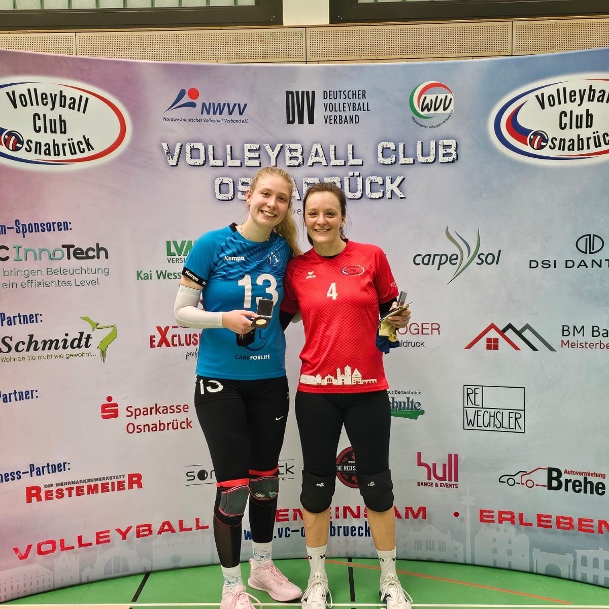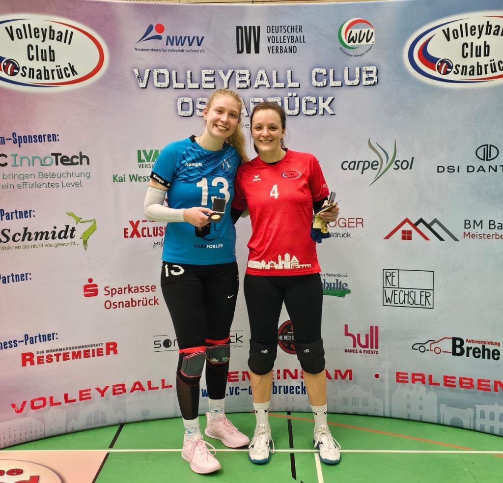 OSNABRÜCK. Der Blick der Drittliga-Volleyballerinnen des VC Osnabrück kann sich so allmählich Richtung obere Tabellenhälfte richten. Das Team des Trainerduos Gunnar Kraus/Philippe Quistorff schob sich nach einem glatten 3:0 (25:19, 25:15, 25:15)-Sieg im Derby gegen den TV Cloppenburg vor den Sonntagspartien auf Platz 5 vor und blickt nun mit Vorfreude aufs kommende Wochenende (Sa. 8.2.), wenn der Tabellenzweite SCU Emlichheim II in der Schlosswallhalle zu Gast sein wird. Zur MVP wurde auf Osnabrücker Seite zum sechsten Mal Kapitänin Lisanne Masselink gewählt, die wieder mit starken Aufschlägen und ihrer Wucht bei Angriffsschlägen für manches Aha-Erlebnis sorgte.