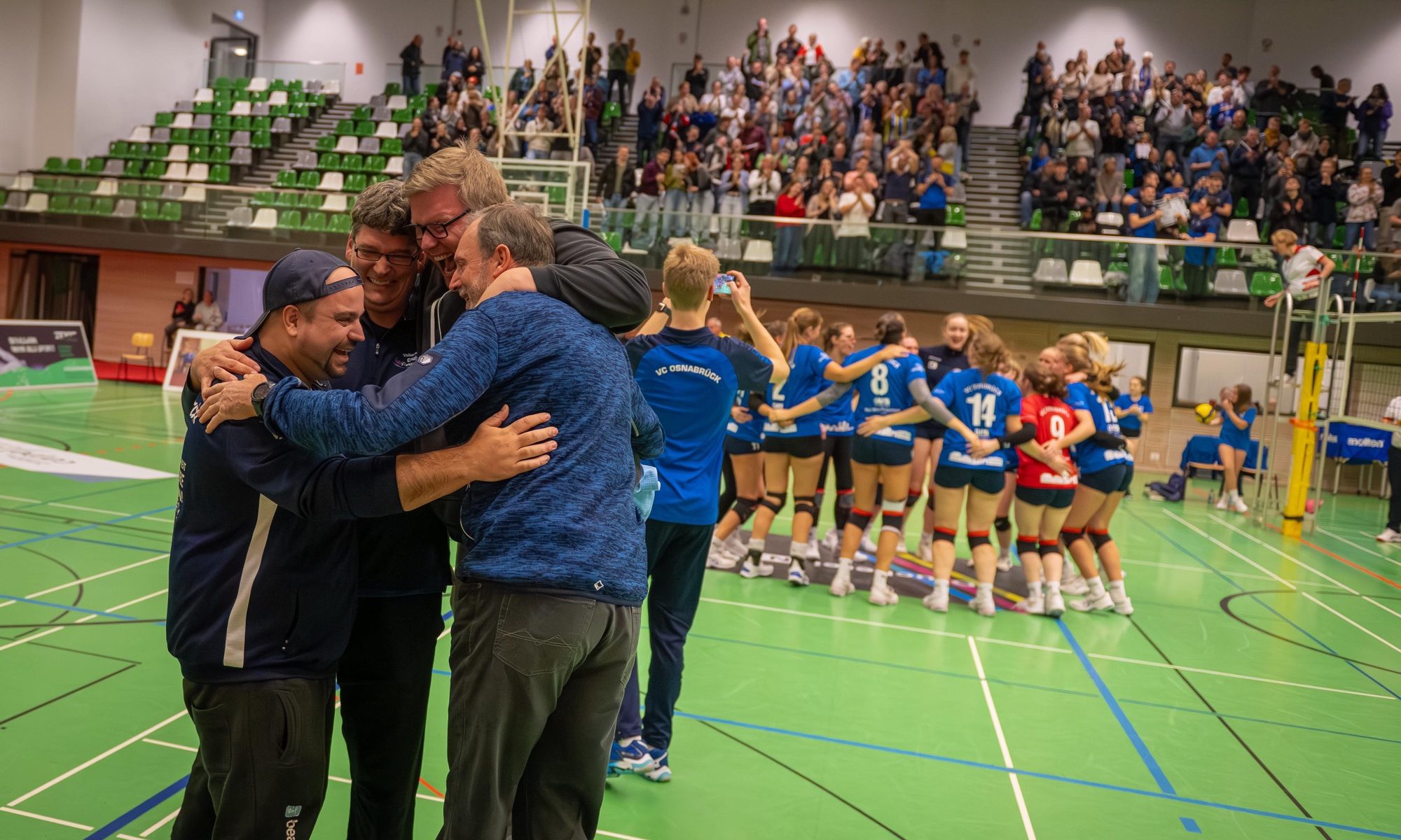 Ich finde, unsere Heimspiele haben sich noch weiter als tolles Event entwickelt. Die Zuschauerzahlen zeigen weiter ansteigenden Trend, das macht Spaß. Spielerisch haben wir uns gerade zuletzt als ganze Mannschaft entwickelt. Explizit kann man vielleicht unsere Zuspielerin Agatha (Janzen) nennen, die nach der Schwangerschaft von Linda (Dieckmann)alleine ins kalte Wasser geschmissen wurde, im Prinzip sehr überrascht hat und ihre Sache ganz hervorragend macht. Unsere jungen Spielerinnen sind noch nicht richtig losgelassen worden. Charlotte (Berelsmann) hat einmal kurz zeigen können, was sie alles schon kann. Lotta (Lorenz) ist noch mehr im Zaum gehalten worden. Insgesamt entwickeln sich beide heimlich im Training sehr gut weiter.
