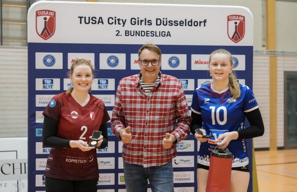„Das war leider heute deutlich zu wenig, aber die vielen Krankheiten im Vorfeld waren für unsere Vorbereitung eine Katastrophe. Und den Ausfall von Lisanne konnten wir überhaupt nicht kompensieren. Wir sind noch eine junge Mannschaft und uns fehlt in solchen Situation wie heute noch sehr viel an Erfahrung. Wir haben auf ein besseres Spiel gehofft, sind aber nicht überrascht, dass wir das so nicht hingekriegt haben. Unter Druck brechen wir noch ein – Düsseldorf hat jeden langen Ballwechsel gewonnen, weil die einfach keinen Fehler machen, anders als wir. Das Spiel ist nicht im Block verloren worden, sondern durch unsere alten Fehler. Die haben sehr geschickt angegriffen und wir waren immer zu früh mit dem Block. Die haben den angeschlagen oder die Lücke getroffen. Ich finde, wir waren in der Feldverteidigung zu statisch, weil unsere Mädels Schiss in der Buchse hatten. – Platz 10 ist das, was wir vor der Saison erreichen wollten. Das Soll haben wir denke ich übererfüllt und sogar auch noch deutlich mehr geschafft, so wie wir uns verbessert haben. Dazu haben wir 30 Punkte geholt, damit wären wir vorher super zufrieden gewesen. Ich bin am Ende nur erleichtert, dass sich unsere super Arbeit übers Jahr ausgezahlt hat und wir weiter 2. Liga spielen können.“