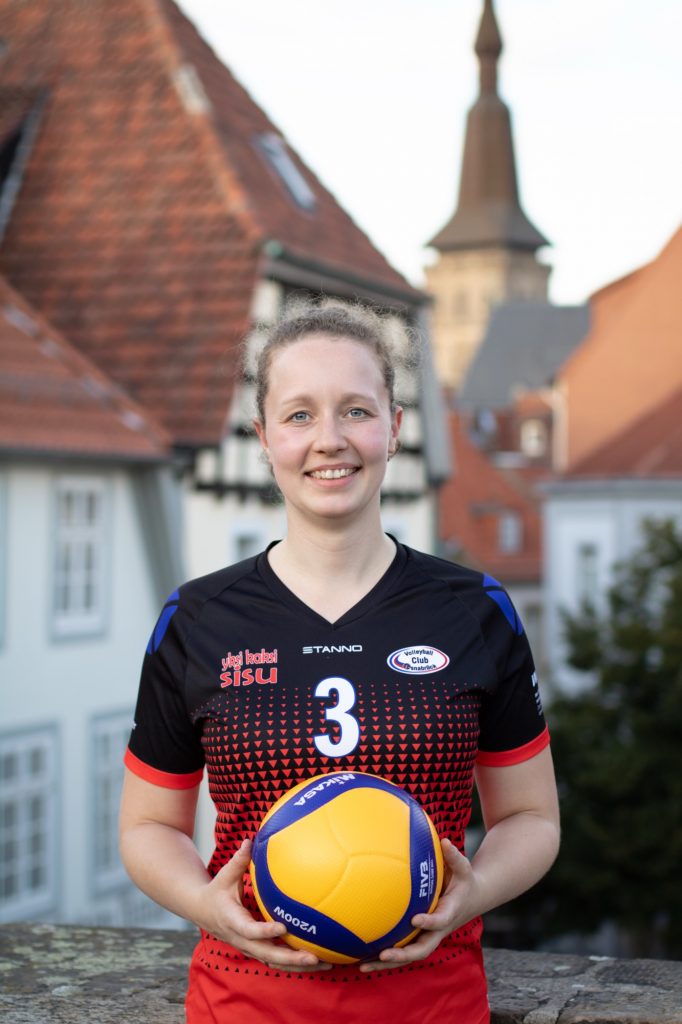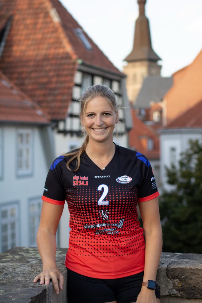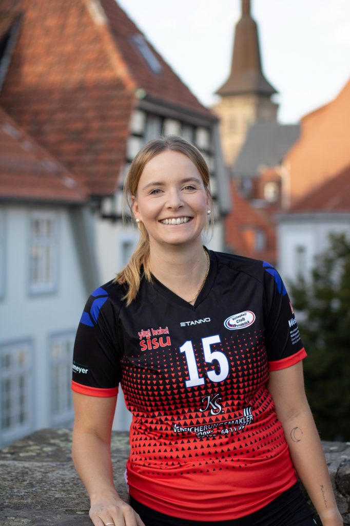 Rebecca Land hielt ebenfalls jahrelang, genauer gesagt 15 Jahre mit Studienunterbrechung und Babypause, die Knochen für den VC Osnabrück hin. Jetzt ist für die Diagonalangreiferin die Zeit reif fürs Kariereende, das zweite Baby ist unterwegs. Für die Zweitligasaison hatte die ehemalige Teamkapitänin im letzten Sommer nach ihrer Babypause nochmal angefangen und das Team in den letzten Monaten als wichtiger Backup unterstützt. „Ich bin ganz entspannt, tatsächlich. Natürlich wird mir was fehlen mit der Stimmung und auf dem hohen Niveau Volleyball mit der Atmosphäre hier. Aber ich habe mich lange genug mit der Entscheidung auseinandergesetzt und bin als sachlicher Typ damit fein“, sagt Land zum endgültigen Abschied vom Leistungssport. „Die Situation damals als 18-Jährige war eine ganz andere als heute. Damals wollte man noch ganz viel lernen und auf hohem Niveau Erfahrungen sammeln. Und jetzt sind wir hier in der 2 Liga. Gegen Emlichheim war nochmal richtig krass.“